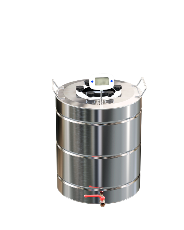 Два электронных термодатчика точно контролируют температуру, которая для получения более качественного напитка должна быть в пределах 78-79⁰С. Кран в нижней части бака дает возможность с легкостью сливать брагу. Широкая горловина позволяет легко промыть куб после приготовления, а прокладка из пищевого силикона обеспечивает герметичность и не пропускает неприятный запах примесей в процессе перегонки. Бак в новом исполнении привлекает не только своим стильным внешним видом, но и повышенной прочностью за счет ребер жесткости.