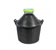 Банка в пластиковой корзине 34 л предназначена для хранения и транспортировки различных жидкостей и сыпучих продуктов, а также для брожения.