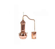 Эту модель аламбика можно использовать как для перегонки браги и вина, так и для получения эфирных масел, гидролатов и цветочных вод. Куб аламбика заполняется водой, а колонна сырьем. Пар проходит через органику растений и захватывает с собой молекулы эфирных масел. На выходе Вы получите ароматную воду и ценное масло.