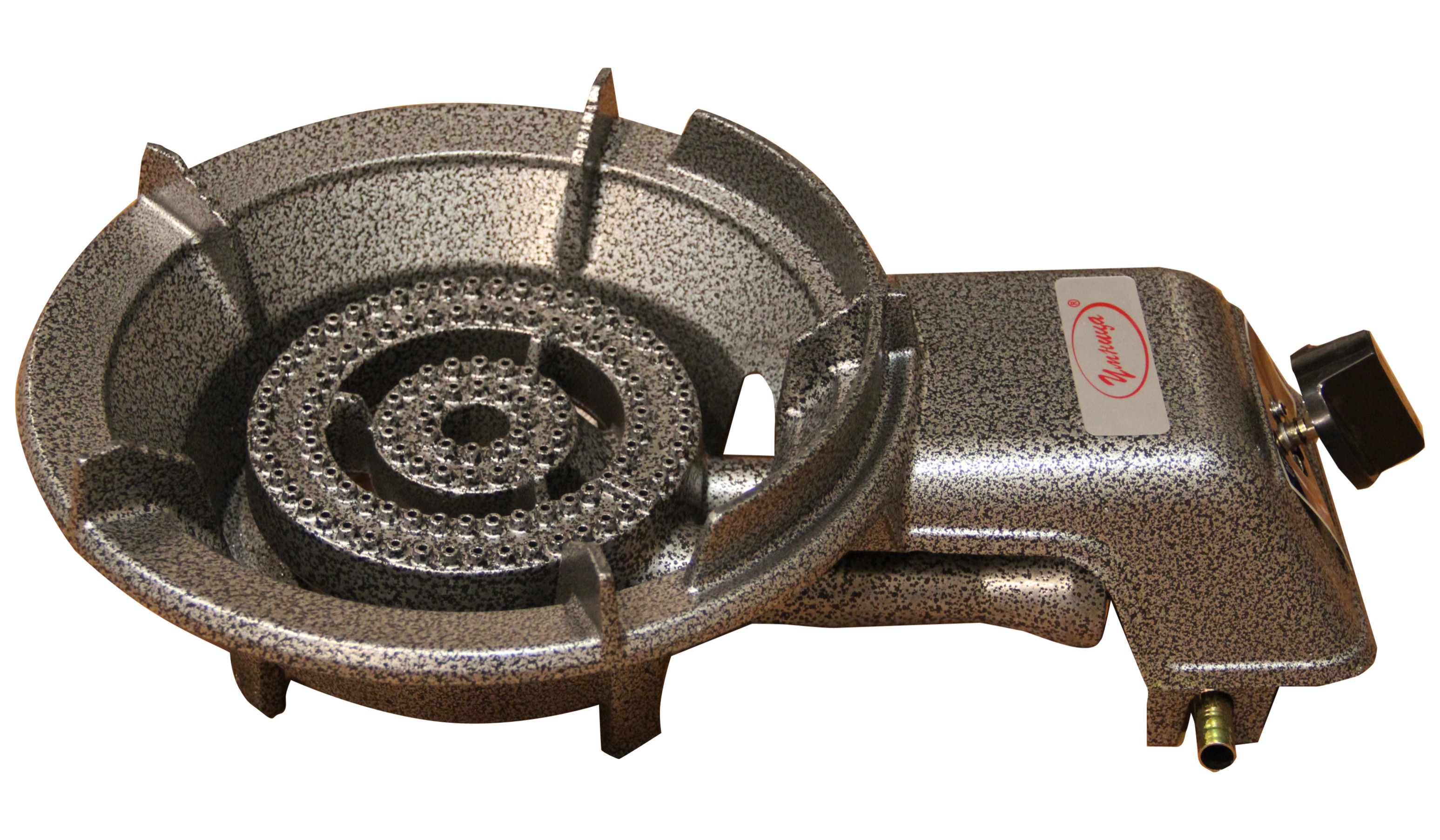 Для удобства пользователей в конструкции предусмотрено 2 независимых контура горения, боковушки от опрокидывания посуды, четыре устойчивых ножки. Пламя регулируется двумя способами: