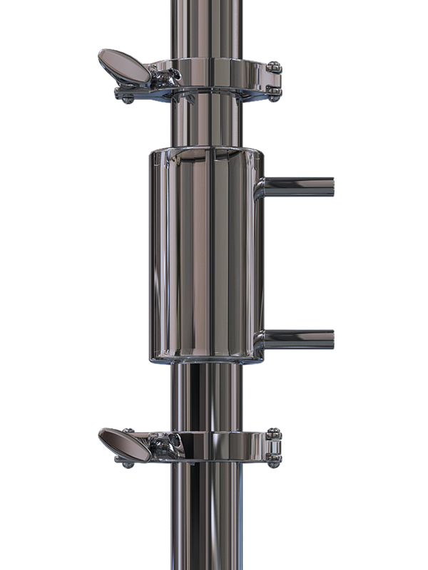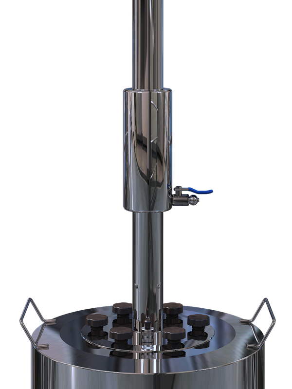 Данная колонна может использоваться как дистиллятор и как ректификационная колонна. При помощи клампов соединения она легко трансформируется в чистый дистиллятор (если необходимо быстро перегнать продукт) и в ректификатор (если есть необходимость в получении спирта). В первом случае на стойку непосредственно крепится холодильник, а во втором случае – колонна в совокупности с дефлегматором оснащается дополнительной царгой.